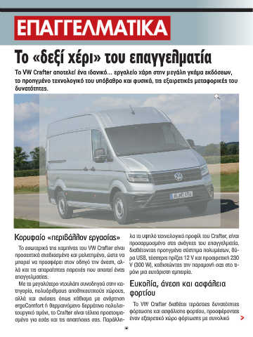 Κορυφαίο «περιβάλλον εργασίας» λα το υψηλό τεχνολογικό προφίλ του Crafter, είναι
